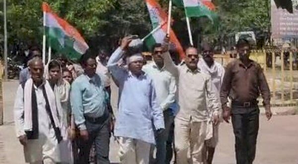 विदिशा:कांग्रेस का अनोखा प्रदर्शन, सिर पर मटका रख कलेक्ट्रेट पहुंचे कार्यकर्ता